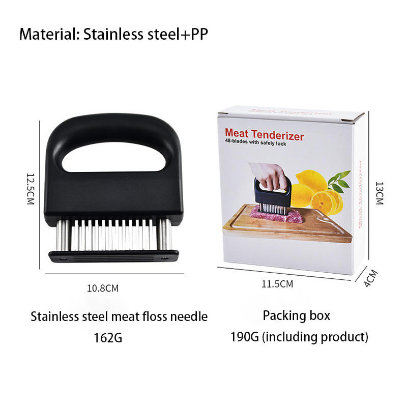 Its scientific structural design balances practicality and efficiency. The slender and sharp needle can accurately cut the fibers of meat, and the fine small holes pierced can accelerate the penetration of seasoning while maintaining the intact shape of the meat. Suitable for various types of meat such as steak, chicken breast, pork chops, etc., it can effectively shorten cooking time, avoid meat aging, and help achieve a fresh, tender, and juicy professional taste in daily home cooked dishes and hard dishes for meals.